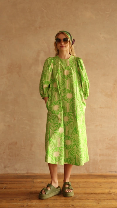 Bella Puff Sleeve Dress Moonflower Spring Green