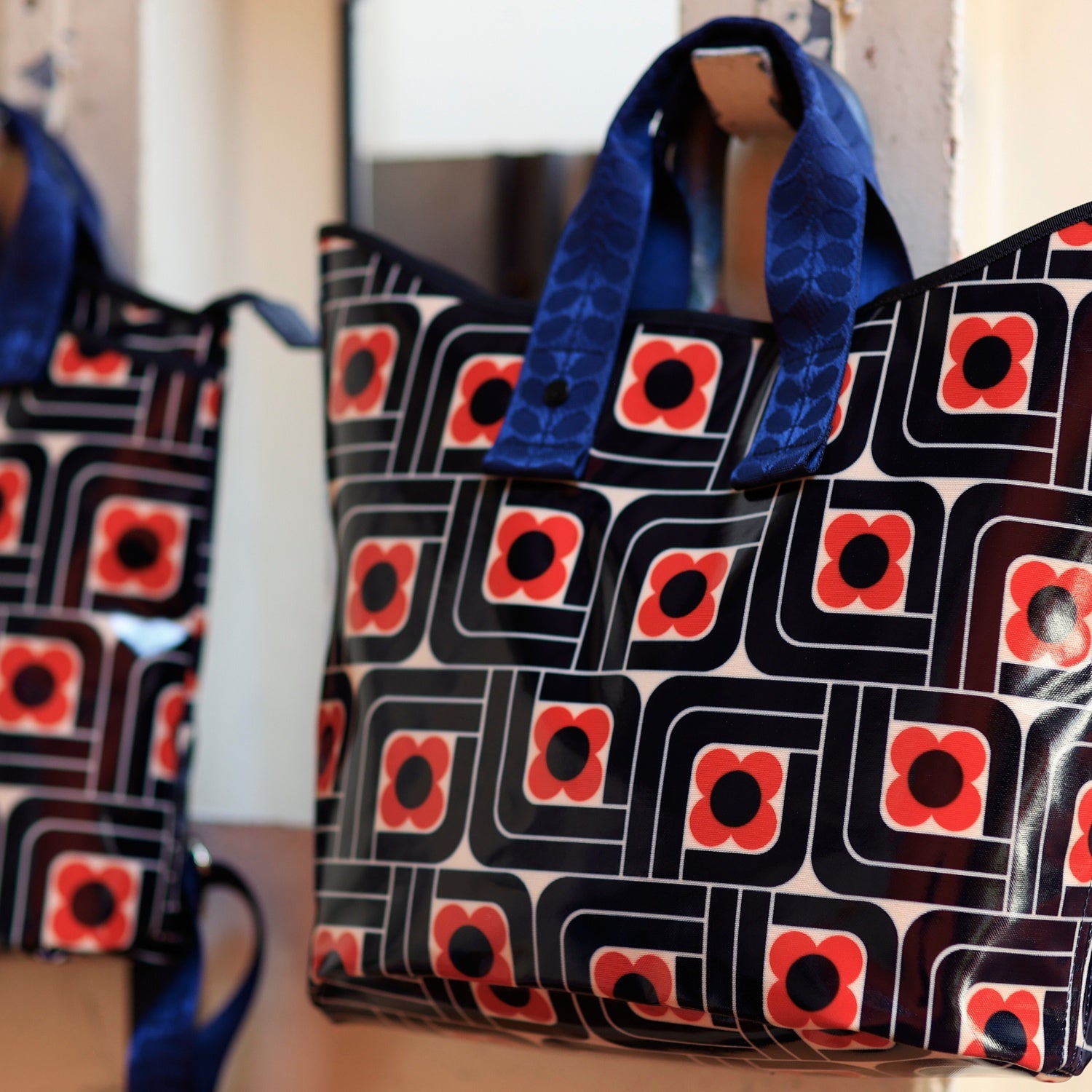 The Orla Kiely Carry Backpack returns for our autumn ‘25 season. A sleek and versatile women’s backpack designed to bring function and style to your everyday routine. Crafted in a more sustainable recycled polyester with a glossy finish, with accented trims in our textured barkcloth, its blends practicality with conscious design.