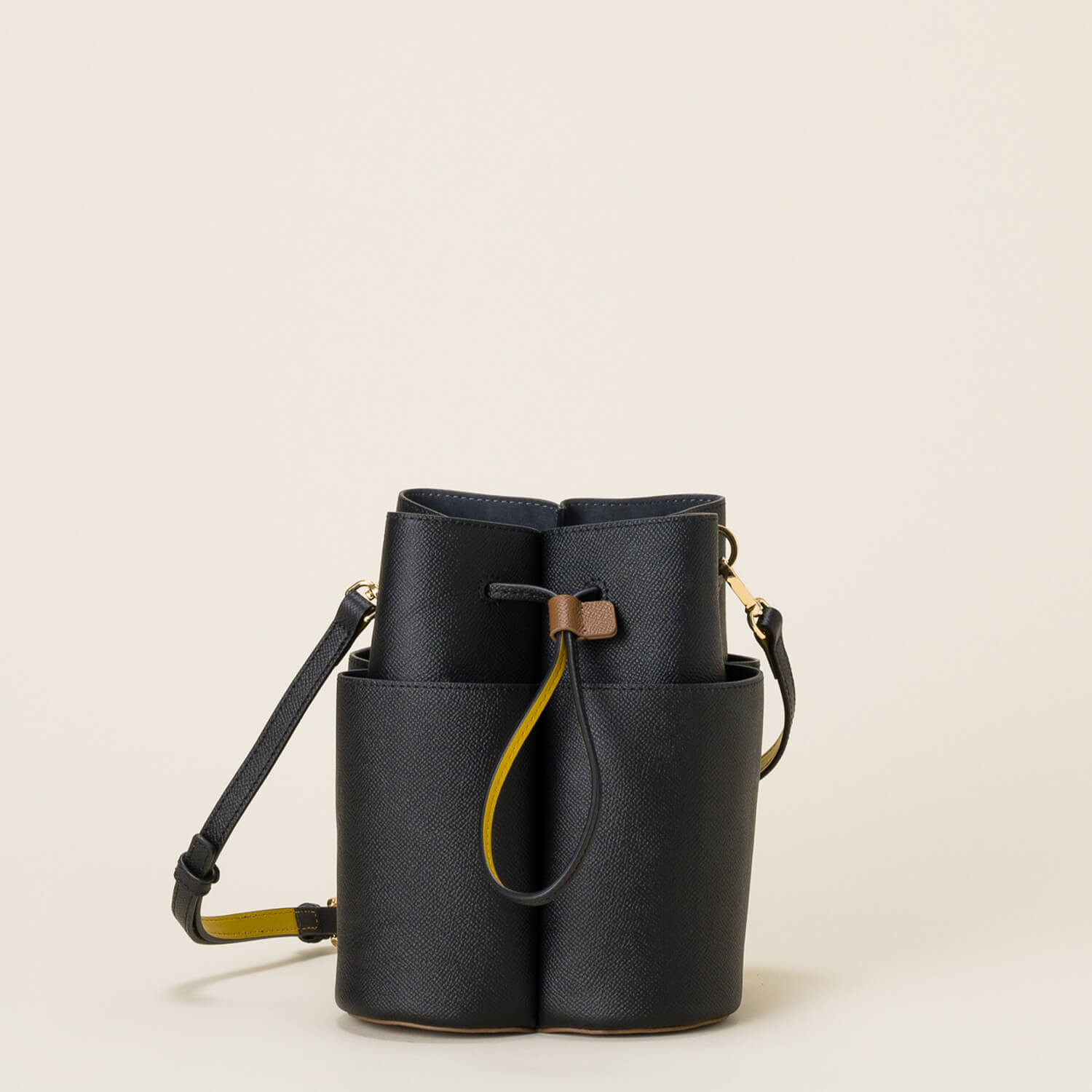 This unique, elegant handbag showcases the iconic four petal flower synonymous with the Orla Kiely brand. One of our more muted designs, the combination of black and brown is elevated with a cheeky pop of yellow on the base of the bag. Featuring a drawstring closure, the Flower Petal Crossbody’s compact size and vertical silhouette ensure easy access to your belongings. Additionally, the adjustable shoulder strap offers versatility with five different length options.