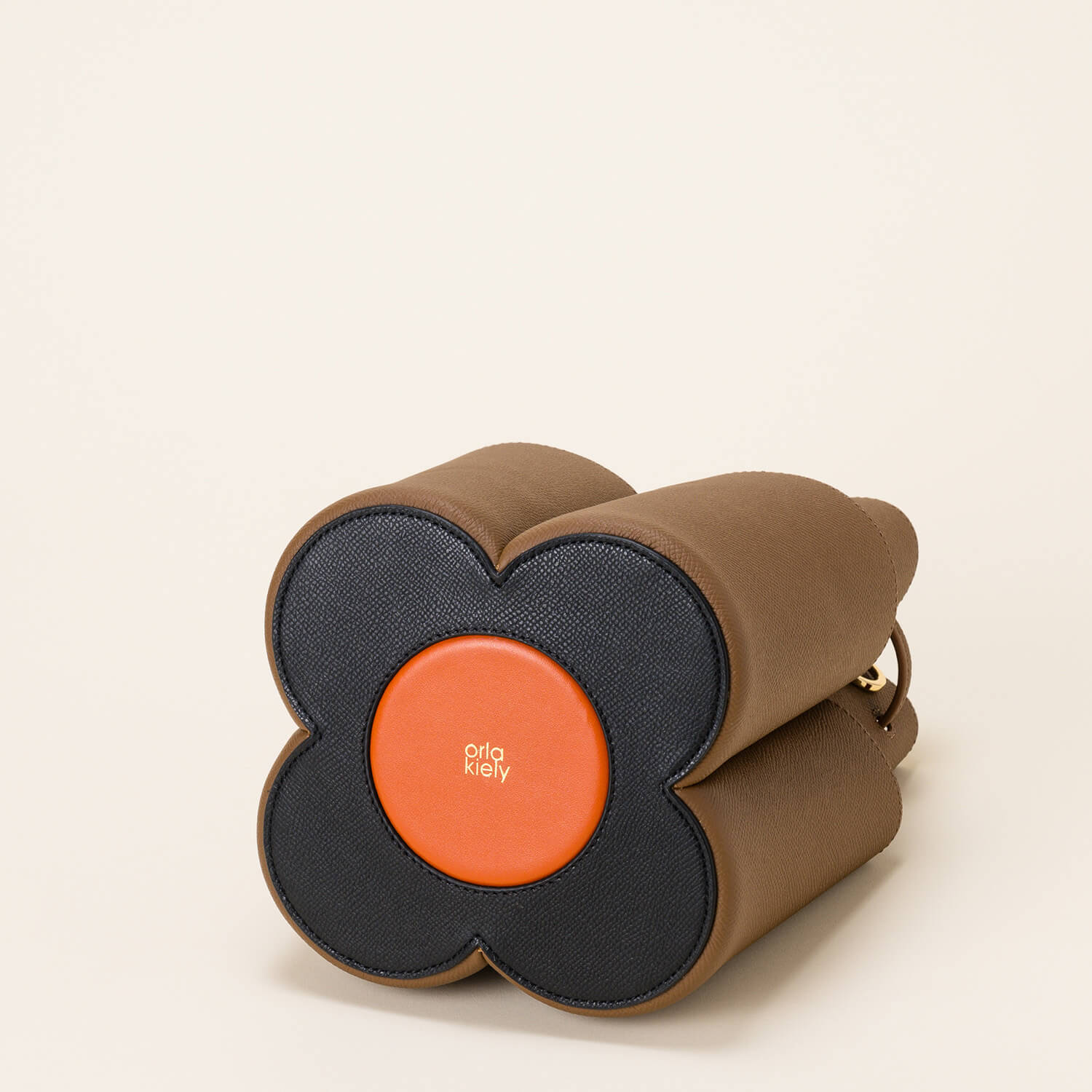 This unique, elegant handbag showcases the iconic four petal flower synonymous with the Orla Kiely brand. One of our more muted designs, the combination of black and brown is elevated with a cheeky pop of orange on the base of the bag. Featuring a drawstring closure, the Flower Petal Crossbody’s compact size and vertical silhouette ensure easy access to your belongings. Additionally, the adjustable shoulder strap offers versatility with five different length options.