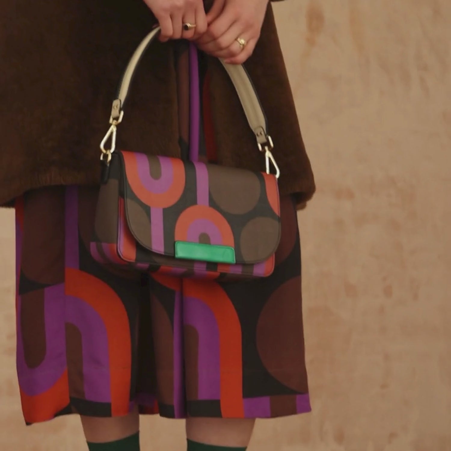 For Autumn Winter ‘25, our Barkcloth material features a new circle line print. Made with burnt orange, rich brown, and deep violet hues, the circle line print features a bold, retro-inspired geometric pattern with a distinctively 70’s aesthetic, a time that always provides Orla with inspiration.
